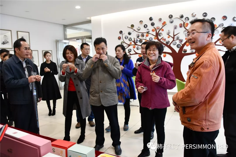 刚到厂门口,就受到了富平捷克论坛 全体工作人员的热烈欢迎。黄立红一行兴致勃勃地走进厂区,听取专业人员的讲解和柿子产品的介绍、并品尝了公司旗下的“柿子红了”“柿饼+核桃”等产品,啧啧称赞味道好极了。
