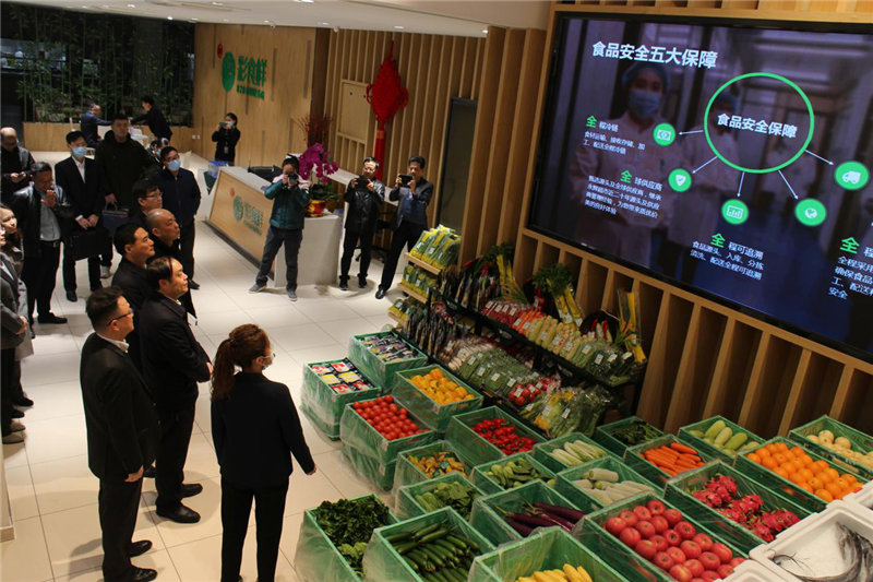 在彩食鲜精包装食材及B端客户供应食材的展示区域,调研团先是详细询问了生鲜食材的进货批次、产地、供应商、检测标准、检测结果、检测项目等详细信息,随后在工作人员的指引下亲自体验了食品安全扫码溯源服务,并给予了高度评价。
