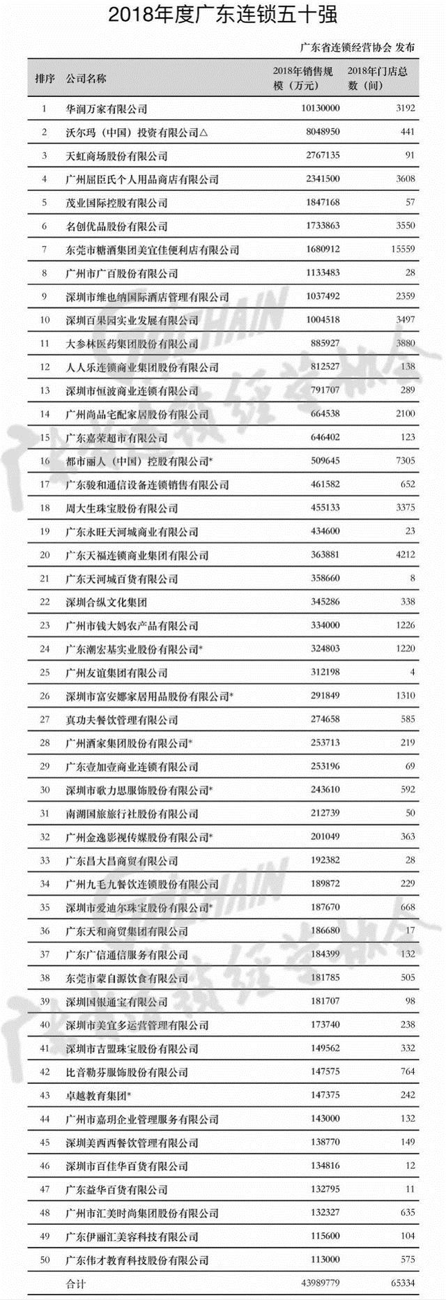 附:《2018年度广东连锁五十强》榜单