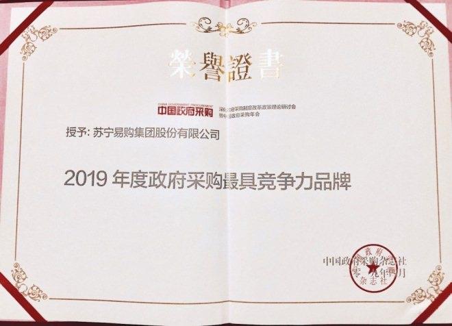 4月23日,苏宁大客户荣获“政府采购最具竞争力品牌”奖