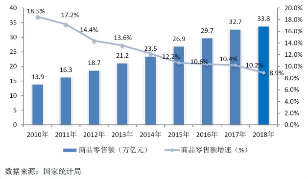 全年商品零售额达33.8万亿元,同比增长8.9%,行业发展规模保持平稳增长,重点企业尤其是上市公司效益改善。