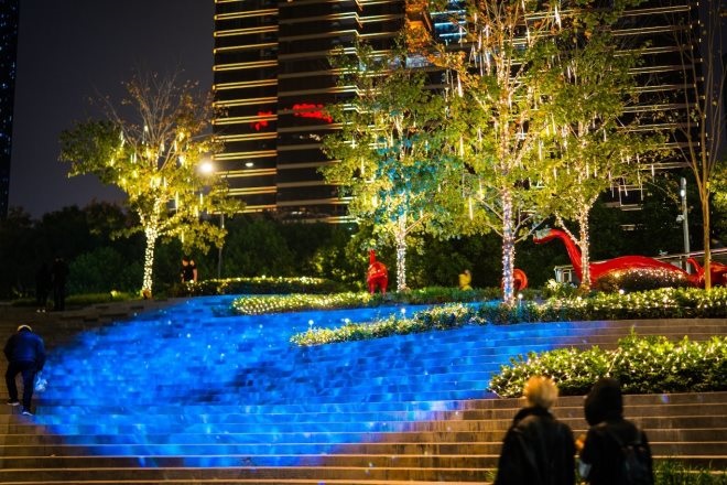 亮灯仪式在来福士户外同步开启,建筑四周的街道都悬挂起斑斓的流星灯饰,星光点点围绕着整个来福士的四周,整条街的空气就变得更为灵动,散发着浓浓的耶诞氛围,穿行在杭州来福士摩天立体城市,即便天气寒冷也能感觉到很温暖。在B1下沉星阶广场设置了交互式灯光体验,每一个动作、每一个脚步都会引起各种想象不到的光影变化,为消费者打造一个沉浸式3D互动体验的世界。当夜幕降临后,消费者可以边享受购物的乐趣,边抬眼观望点点星尘,好似一场时空交错的浪漫旅程。
