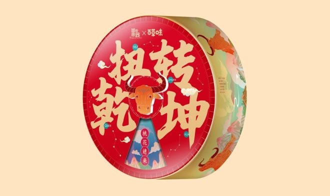 为迎接牛年,百草味联合国家宝藏推出了以青铜亚长牛尊为创意的“扭转乾坤”礼盒,“扭转乾坤”礼盒采用立体牛头旋转的创意设计,盒盖为天、盒身为地,当快速转动牛头时,整个盒身会呈现出圣牛奔跑的画面,寓意牛气冲天、转动乾坤,转出新年好运气。“多宝盒”礼盒则以“四牛鎏金骑士铜贮贝器”为创意来源,盒身取自古代多宝盒形制,运用巧妙的收纳设计,象征古代人的聚宝盆,寓意天下美好尽汇一堂,聚集好运好财好果,守护一整年的好福气。百草味与国家宝藏的联名,将国宝的美好寓意搬进产品中,为年礼赋予深厚的文化内涵,是百草味深挖传统年味的创新一步。