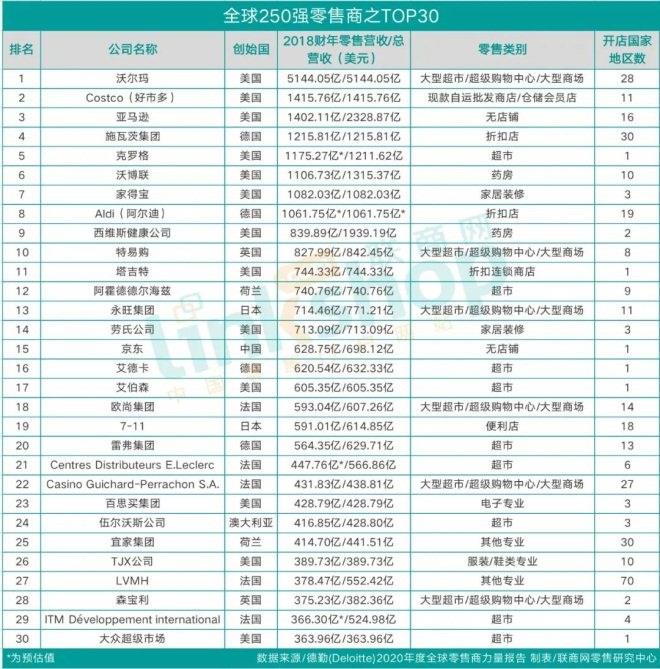 近日,德勤(Deloitte)发布《2020全球零售力量》报告。 ...