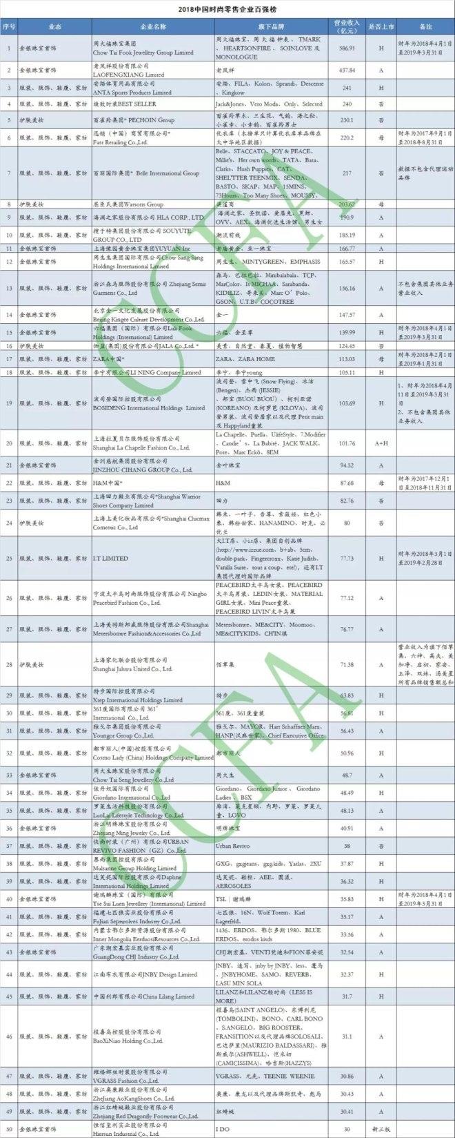 10月11日,中国连锁经营协会首次发布了中国时尚零售企业百强榜。 ...