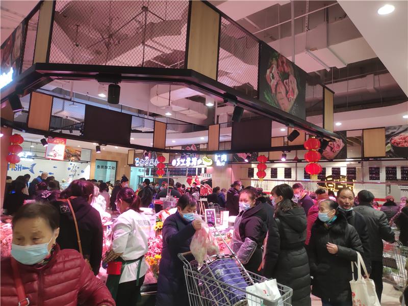 该店位于繁华的湖北省武汉市东西湖区环湖路与金山大道交汇处,周边有学校、医院、公园、办公楼、数十个高档住宅小区,人流量极高。它与该购物中心的百货、影院、游乐场等多种业态相得益彰,成为都市白领、工薪阶层采备家庭所需的不二选择。
