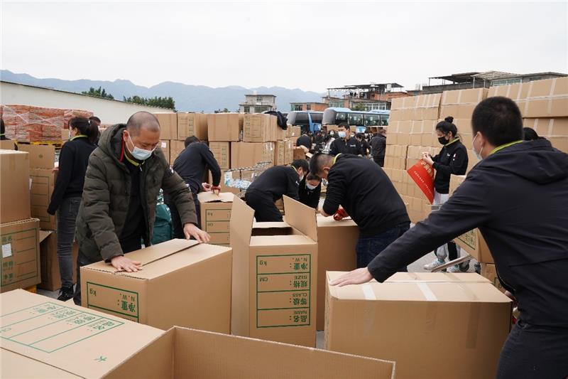 人,争分夺秒、连续奋战27小时,终于完成了10万份商品的拆包、分装、打包工作。