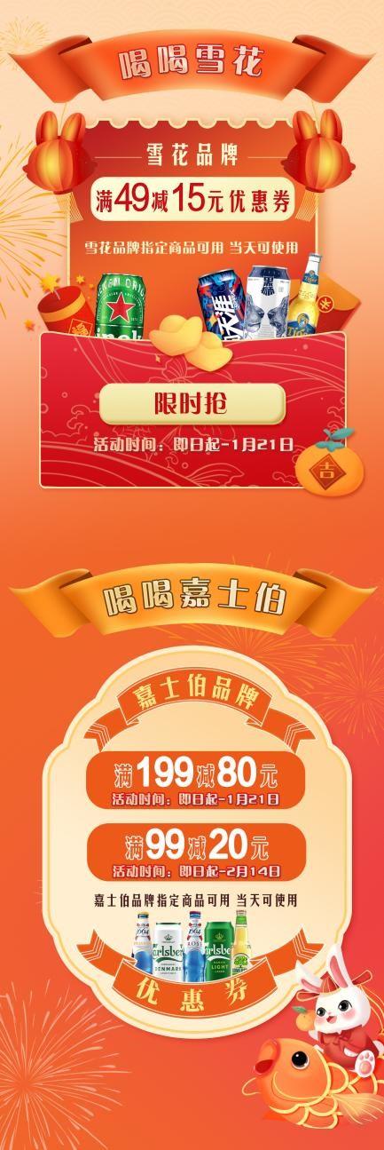 雪花、嘉士伯爱好者也可以去咏悦汇酒库领券购酒。即日起到1月21日,捷克论坛 生活-咏悦汇酒库平台会发放雪花品牌满38减8元券(当天可使用)、雪花品牌满49减15元优惠券(当天可使用)、嘉士伯品牌满199减80元的大额券(当天可使用),即日起到2月14日,还会发放嘉士伯满99减20元优惠券(当天可使用)。