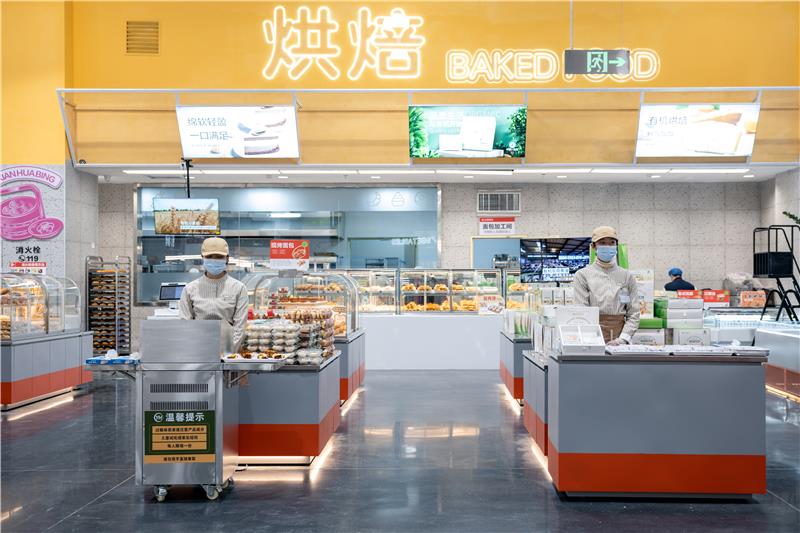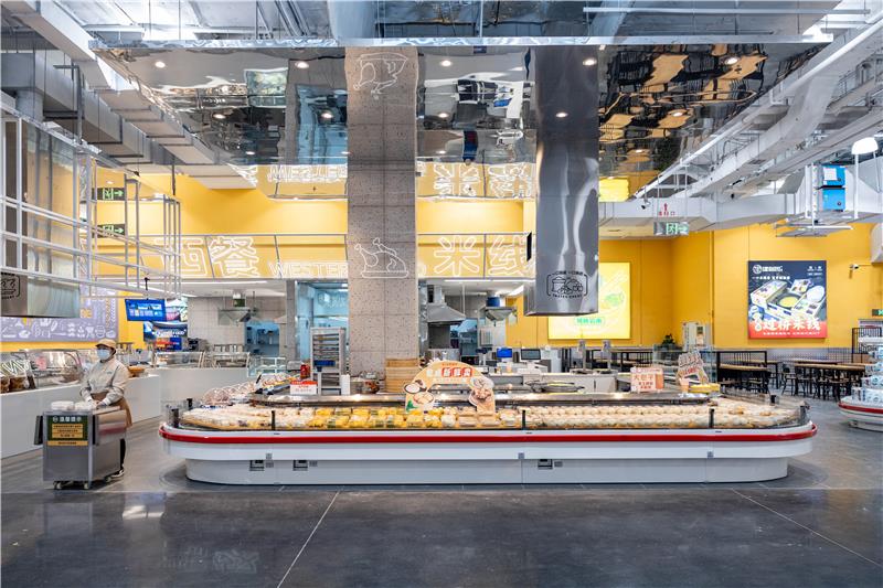 秉持“更高标准、更人性化、更具体验感“的宗旨,对门店场景进行重新设计,通过增加“烟火气“的烘焙区、加工食品区做到”开门见鲜“,充分调动消费者“视觉、嗅觉、味觉”的感官体验。
