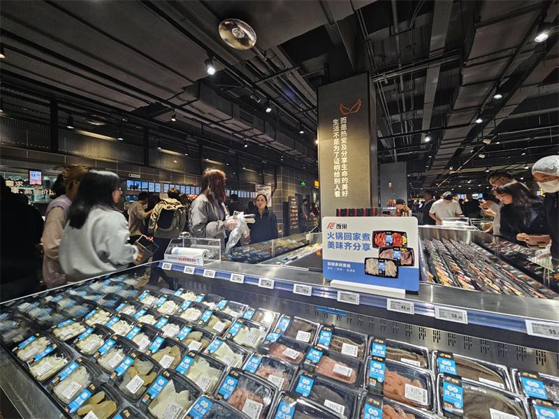 “重庆火锅万物皆可烫,烫的是产业、就业,烫的是对美好生活的向往,每一道食材后面都是一条产业链。我们想的就是把这些产业链聚合到一起,精心筛选质优价美的好商品,争取让顾客可以一站式购齐一顿火锅需要的所有食材。”门店相关负责人介绍,火锅专区的新场景很受本地顾客青睐,“有的是一家人,有的是年轻的情侣,大家一边挑选,一边兴高采烈地商量着晚上要怎么在家烫火锅,是一个很有幸福感的场景,这种模式既是‘火锅+超市’,又像是‘火锅+家’。”