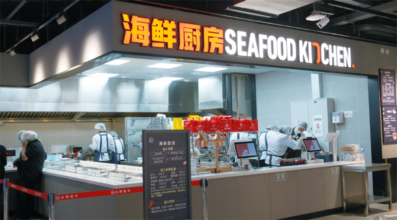 在调改过程中,门店整体破拆率接近90%,一层规划全鲜食品类,烘焙、加工堂食、海鲜厨房、活鲜、肉禽等品类,方便顾客购物就餐需求;二层中庭不堆砌商品,取而代之的是宽敞的休息区,将宝贵的空间归还给顾客。同时,整体开放式动线的调整也让购物变得更加愉快。门店的设备业进行了升级,从冷链设备到加工餐厨设备,整体硬件设施更新占比达到100%,设备品牌也与胖东来时代广场店高度一致。