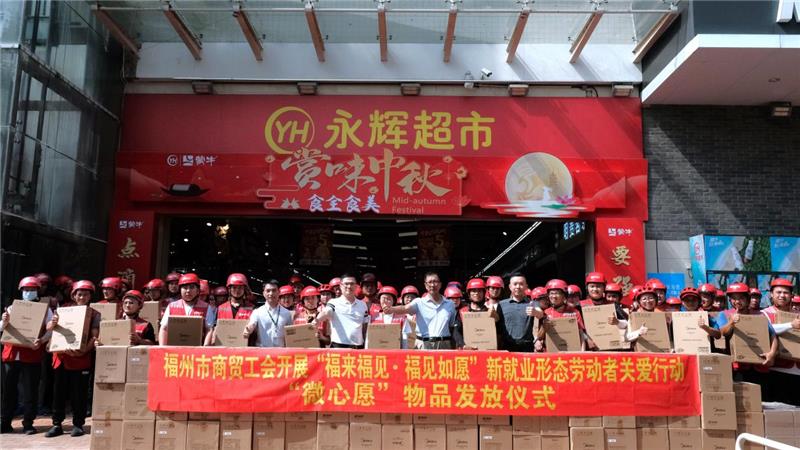 福州市商贸工会开展“福来福见、福见如愿” 新就业形态劳动者关爱行动物品发放仪式