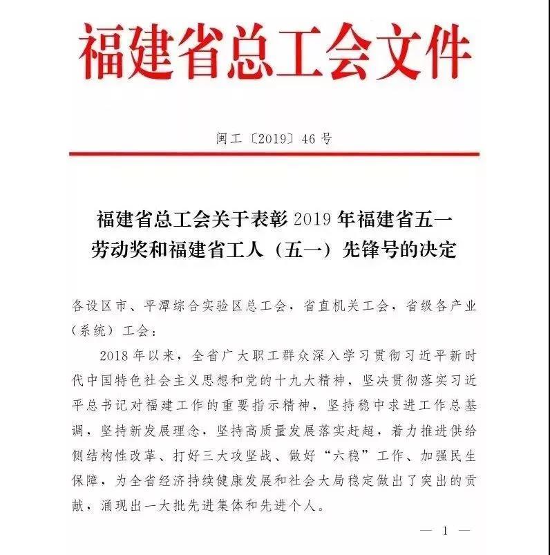 重磅!2019年福建省五一劳动奖先进集体与个人名单